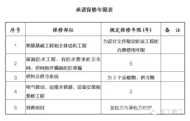(2)工程項(xiàng)目承諾保修期限: